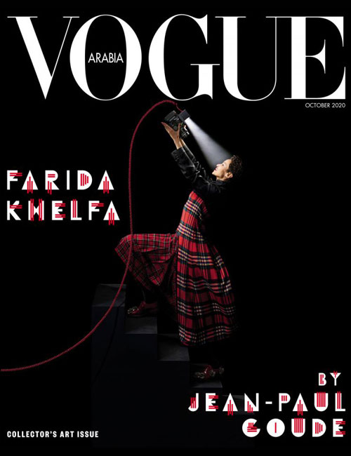 Vogue Arabia October 2020 – Jean-Paul Goude – Farida Khelfa Photographer: Jean-Paul Goude Talent : Farida Khelfa Styled by : Arthur Callegari Makeup Arist : Stéphane Marais Hair Stylist : Laurent Philippon